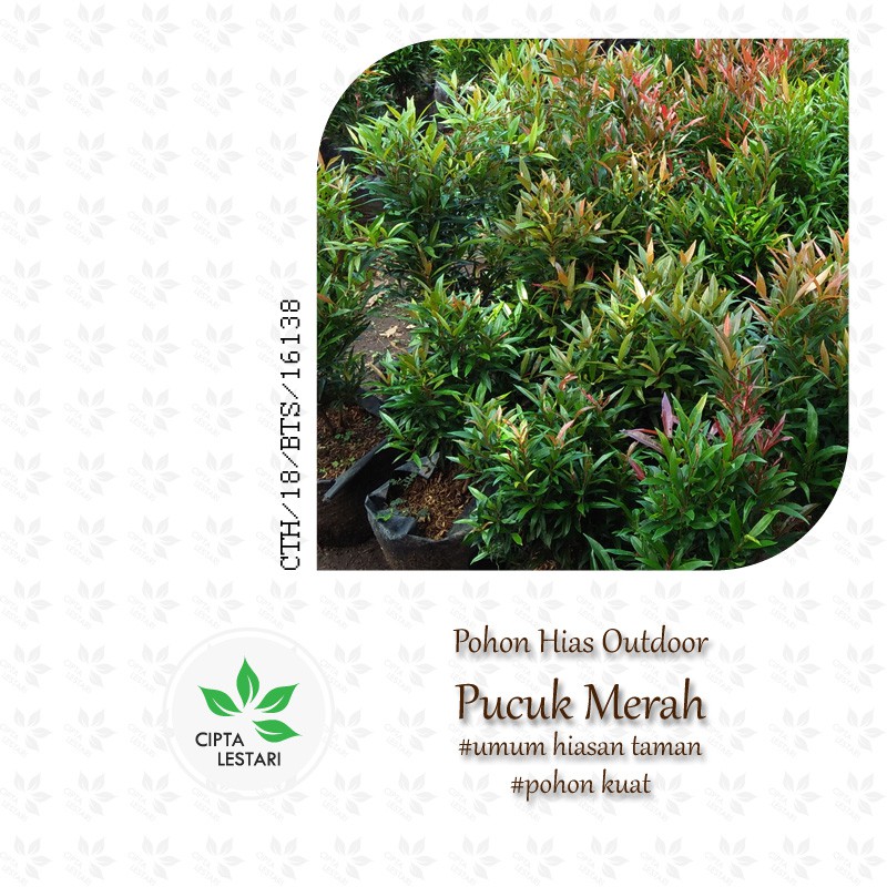 Cipta Lestari Herb waktu ini muncul secara online di internet, & ini adalah online shop. Tersebut, menurut mayoritas, adalah jalan yang patut ditempuh & tidak sedikit orang akan sangat gembira mengetahui ini sebagai satu-satunya jalan utk mendapatkan Bibit Tanaman Pucuk Merah Bibit Pohon Pucuk Merah Tanaman Hias Daun Pucuk Merah. Cipta Lestari Herb jelas berkembang pesat, Di Indonesia saja banyak toko fisik telah menutup ratusan cabang, soalnya ramainya pembelian online.