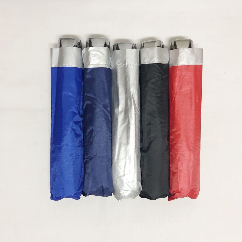 Panjang payung (dilipat) 24cmDiameter payung 88-95cmPayung lipat 3 polos warna lapis silver. Cocok untuk payung promosi.Tersedia dalam 5 pilihan warna seperti digambar: biru, navy, silver, hitam, dan merah.Kami menerima pesanan sablonan dengan minimum quantity 12pcs. Biaya sablon akan dihitung berdasarkan jumlah payung, warna sablonan, dan jumlah gambar/logo yang mau disablon (belum termasuk diharga payung).#payunglipat #payunglipat3 #payungpromosi #payungsablon #payungpolos #payungsilver #payungwarna #payungpoloswarna #merchandise #barangpromositerima