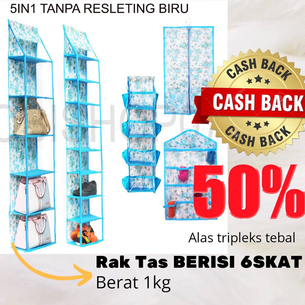 PAKET HEMAT 4IN1 NO RES / TANPA RESLETING DAN 5IN1 NO RES / TANPA RESLETINGADA 3 VARIAN : 1. 4IN1 NO RES / TANPA RESLETING = RAK TAS RAK SEPATU RAK JILBAB DAN RAK UNDERWEAR 2. 5IN1 NO RES / TANPA RESLETING = RAK TAS RAK SEPATU RAK JILBAB RAK UNDERWEAR DAN RAK KOSMETIK3. 3IN1 NO RES / TANPA RESLETING = RAK TAS RAK SEPATU RAK JILBABNB :-WARNA BIRU DIKIRIM SESUAI STOCK ADA DUA WARNA BIRU MUDA DAN BIRU TUA.-HANGER JILBAB DIKIRIM SESUAI STOCK HANGER DILAPISI SELANG TANPA KANTONG DAN TANPA DILAPISI SELANG ADA KANTONGHARGA MURAH BERKUALITAS , BUKAN BARANG MURAHANSILAKAN COMPLAIN JIKA TIDAK BAGUS DENGAN MIKA TEBAL ! SEKAT TRIPLEK TANPA RESLETING PILIHAN WARNA : MERAH, HIJAU, UNGU, PINK , BIRU, HITAM DAN MOTIF SESUAI PERSEDIAAN STOCK.Kelebihan Set HJO + HBO + HSO + RAK UNDERWEAR:- Hijab/jilbab/kerudung, tas, sepatu anda akan tertata lebih rapi - Anda dapat menyimpan banyak hijab/jilbab/kerudung, tas, sepatu anda dalam satu tempat- Anda dapat menghemat tempat karena hijab/jilbab/kerudung, tas, sepatu, disimpan dalam tempat vertikal dan dapat digantung (meringkas rak/lemari biasa yang ukurannya relatif lebar dan ditaruhdilantai)- Hijab/jilbab/kerudung, tas, sepatu anda tidak mudah kotor karena HJO + HBO + HSO dilengkapi dengan cover- Hijab/jilbab/kerudung, tas, sepatu anda lebih mudah dicari karena cover HJO + HBO + HSO yangtransparan-Detail : 1 set terdiri dari 3 macam Barang ( WARNA dan MOTIF SERASI): -HJO :Gantungan Hanger Jilbab / Hijab / Kerudung- HBO (ukuran 138 x 40X19) : 5 tingkat, Gantungan Hanger Tas- HSO (ukuran 138x30X15) : 8 tingkat, Gantungan Hanger Sepatu- Bahan: Spondbound, mika, triplek(sekat 2mm)Berat satu set HJO + HBO + HSO+UNDERWEAR tanpa resleting adalah 1300 gram (1kg JNE & JNT )Rak KOSMETIK Dimensi Rak 80x26x13cmUkuran Tiap Susun 26x12x13cmSisi Kanan ada 4 Kantong dan Sisi Kiri ada 4 KantongSekat TriplekBahan Kain SponboundBerat 160grPERSET DIHITUNG 1 KG JNE DAN JNTBAHAN: - Kain Sponbound tebal - mika tebal 0.15 - triplek 2mm Motif sesuai persediaan kain dari pabrik.Warna antara HJO + HBO + HSO+UNDERWEAR+RAK KOSMETIK selalu samaORDER=S
