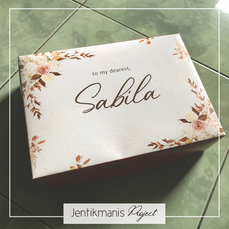 *FREE DESAIN *Box dengan size 28x20x6cm, *Bahan tebal, menggunakan kertas 310 gr*Cocok untuk diisi dengan bahan kain untuk diberikan kepada Bridesmaid atau keluarga.*Bisa custom nama bridesmaid/mempelai dan tanggal/tempat pernikahan (FREE)*Sudah diberi double tape untuk merekatkan *SUDAH TERMASUK PACKING BUBBLE